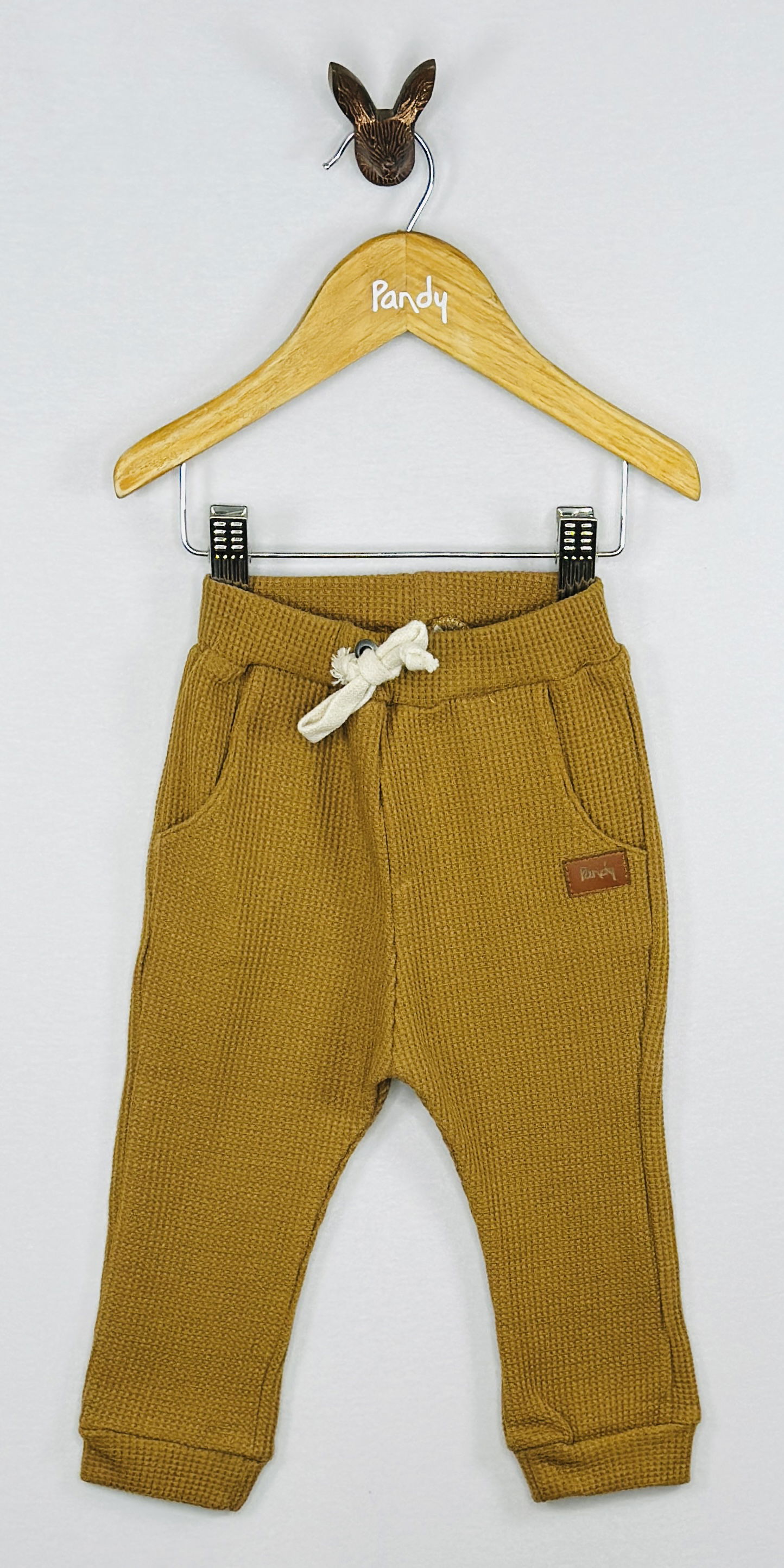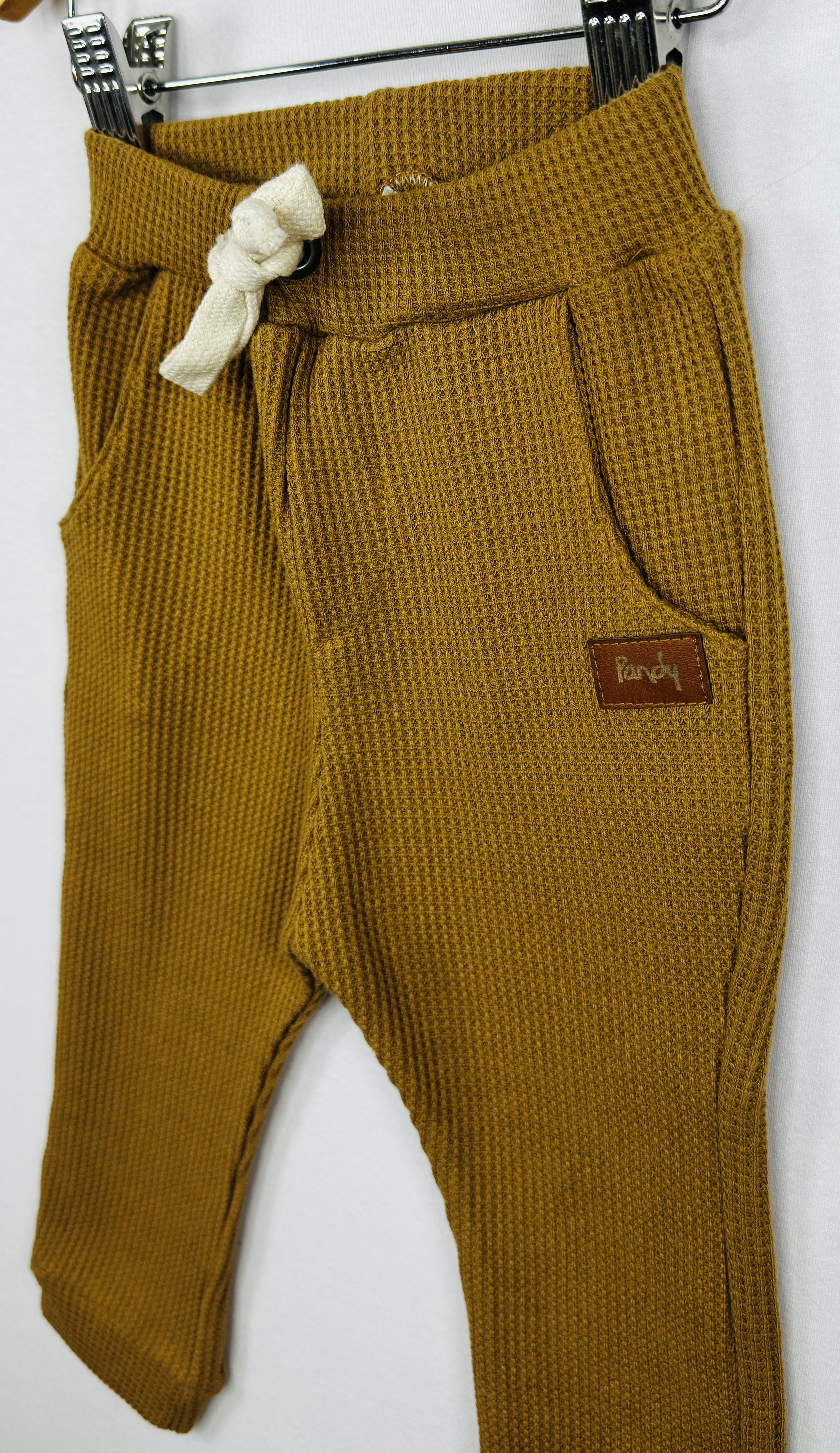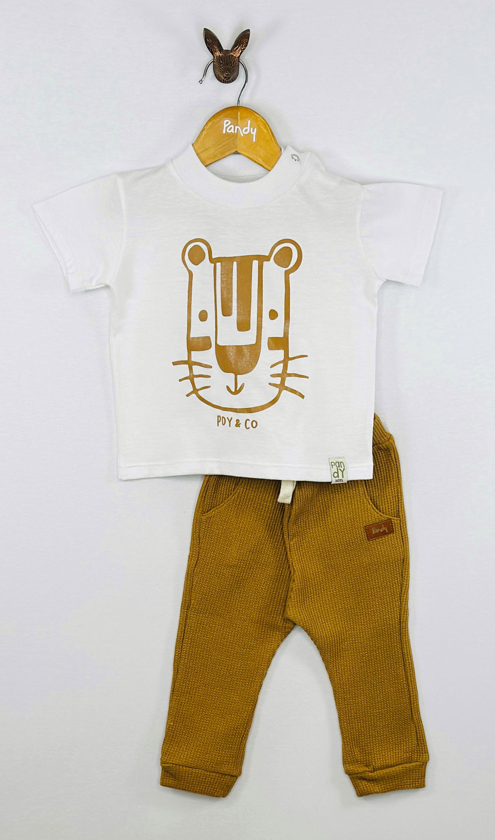 Conjunto de Bebé pantalon de waffle y remera de jersey 100% algodón con estampa en delantero y broches en hombro.