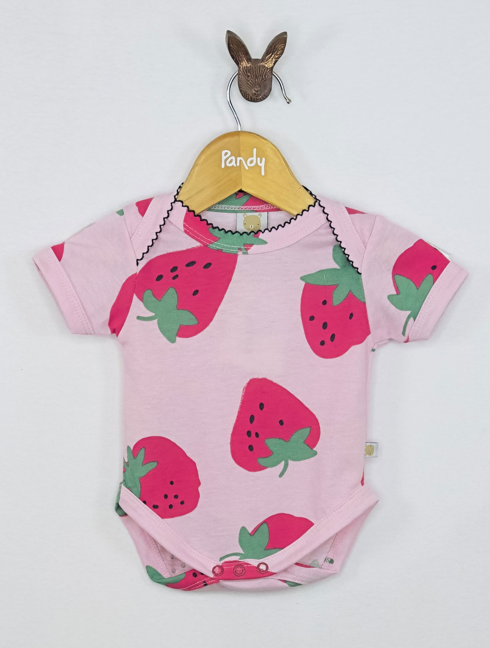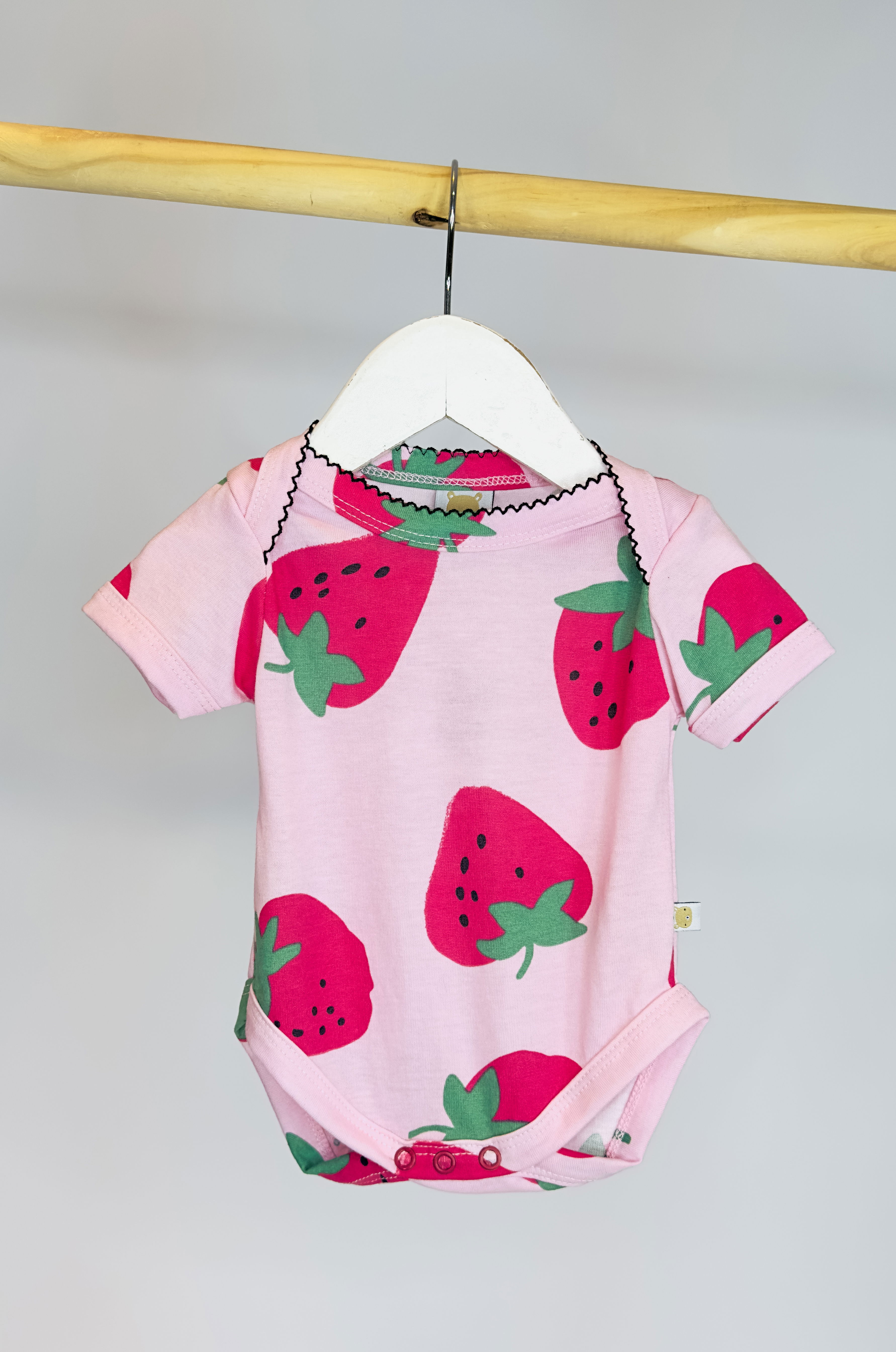 Body minimo manga corta cuello americano con picot, de jersey 100% algodón estampado.
