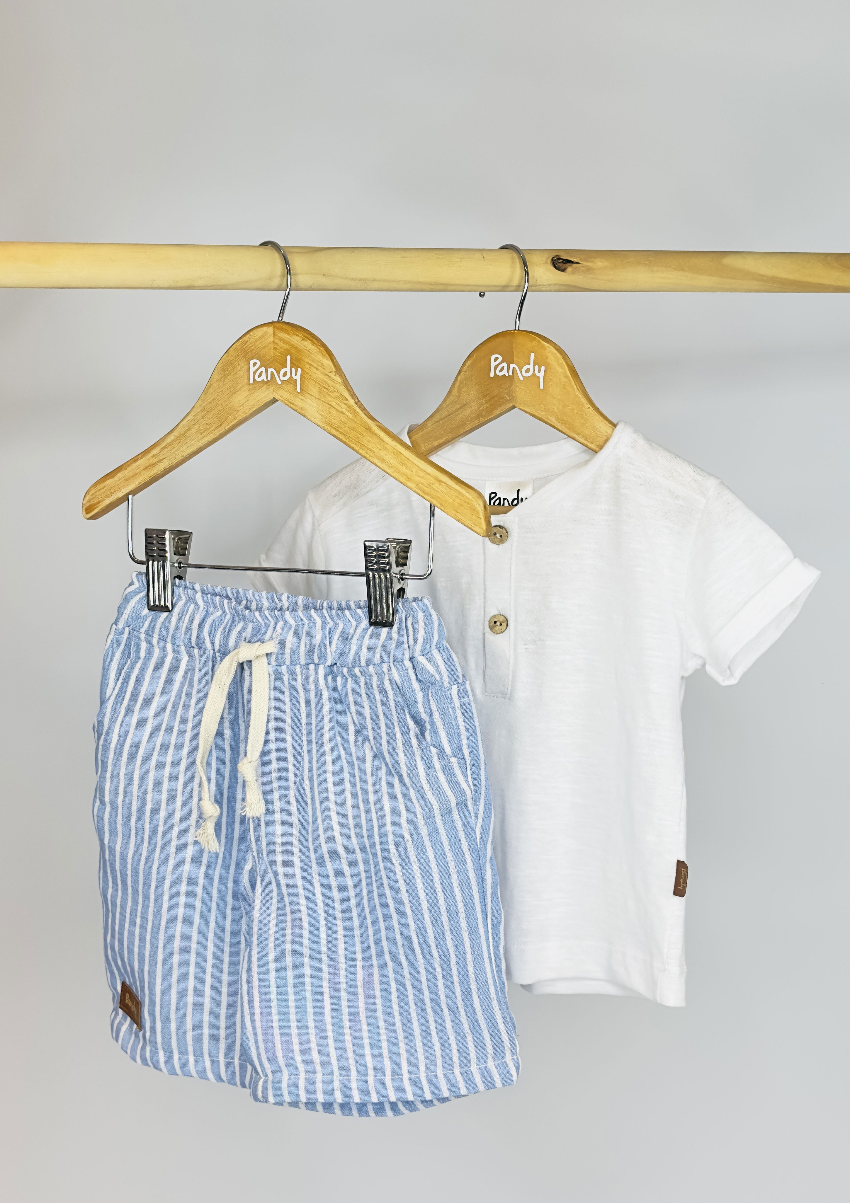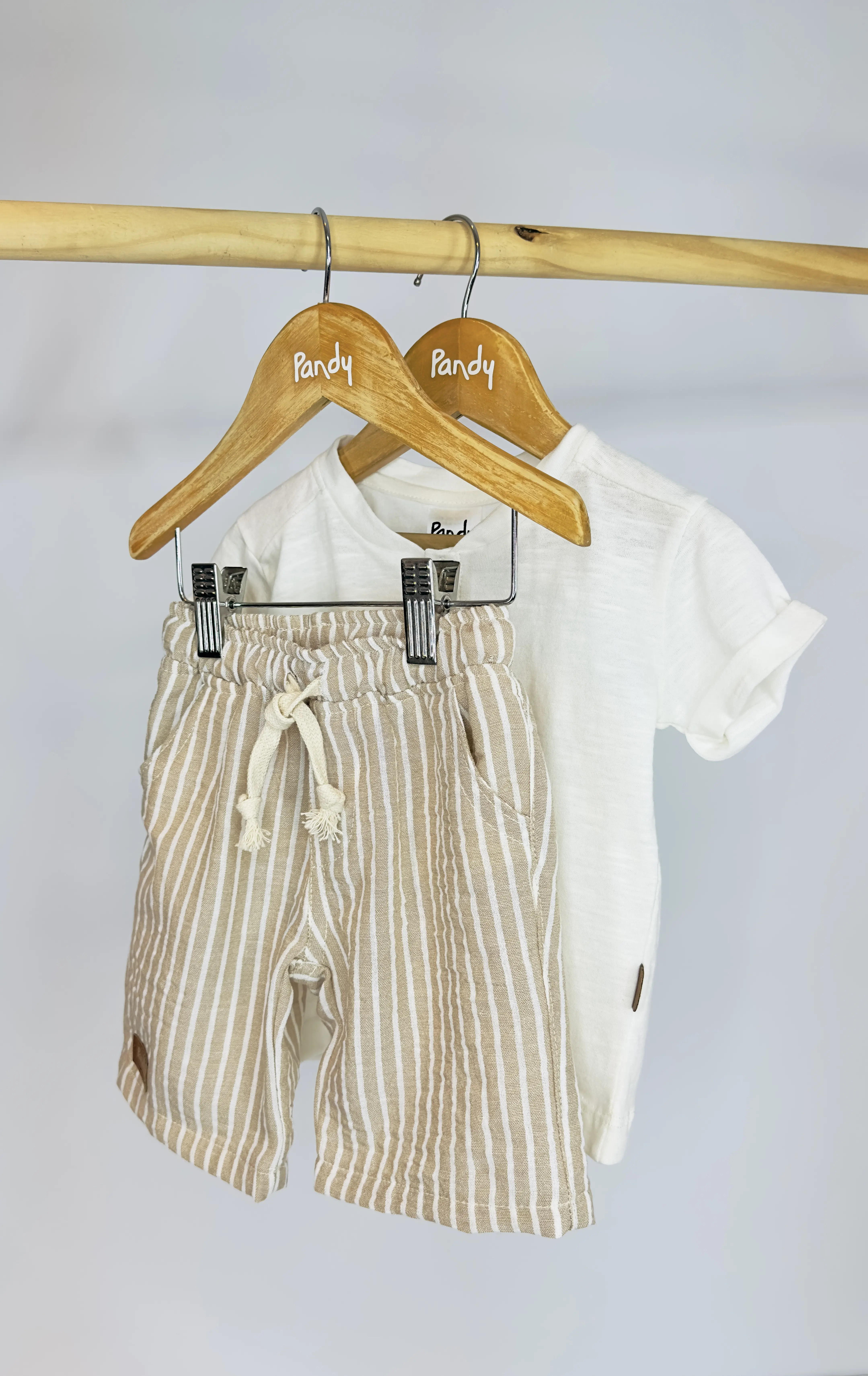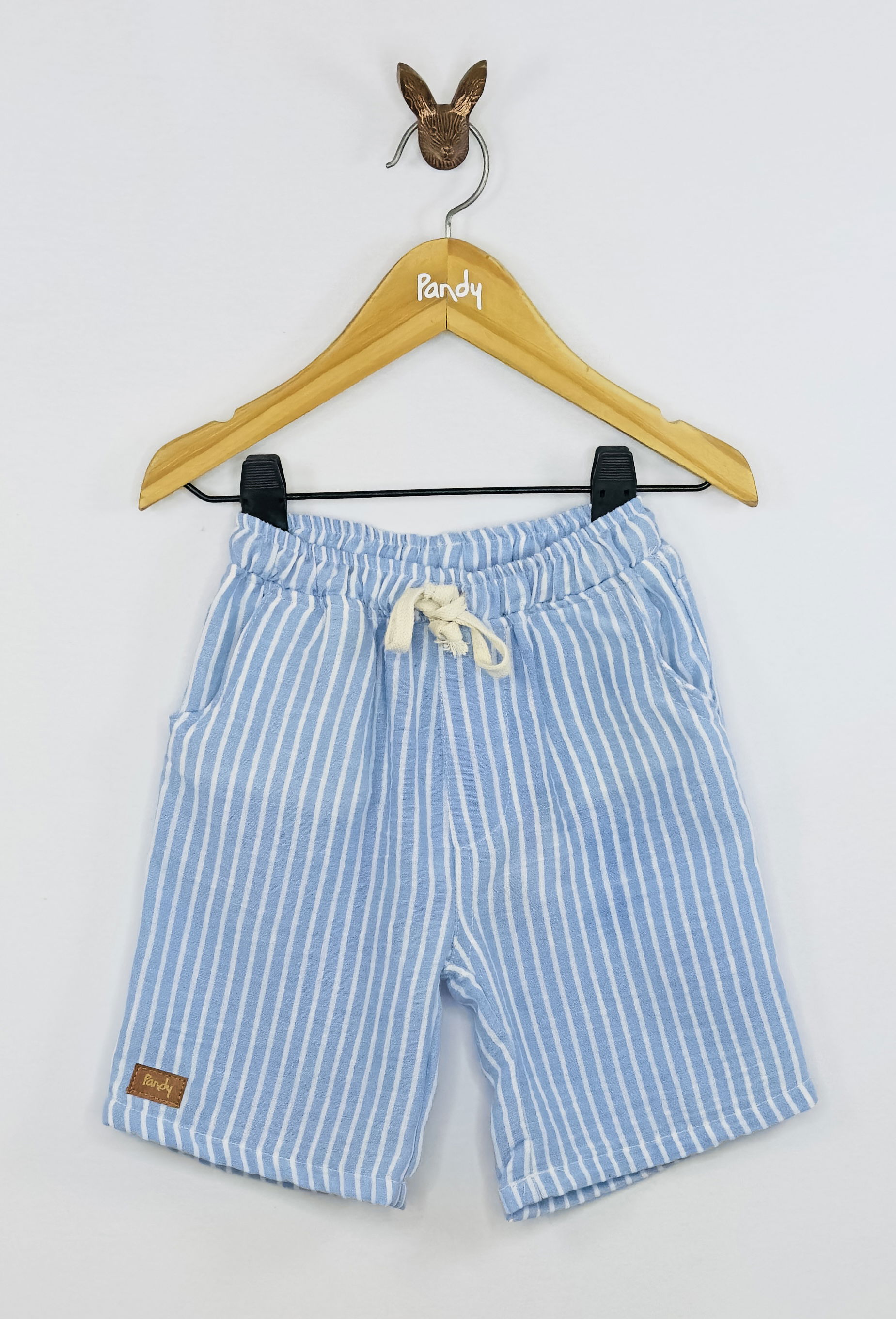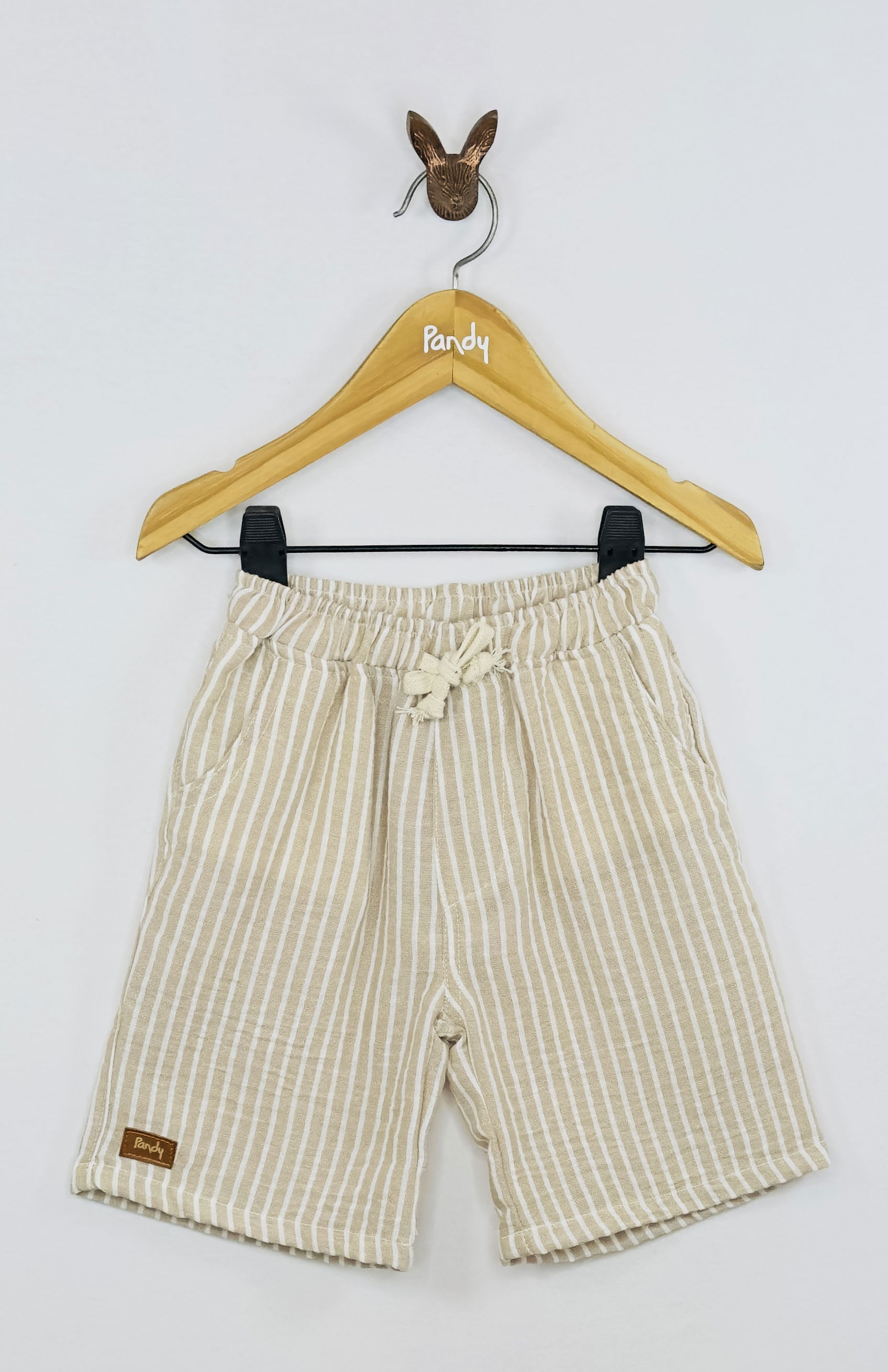 Bermuda Bebe de Lino rayado, Con elástico en cintura y cordón para ajustar.
