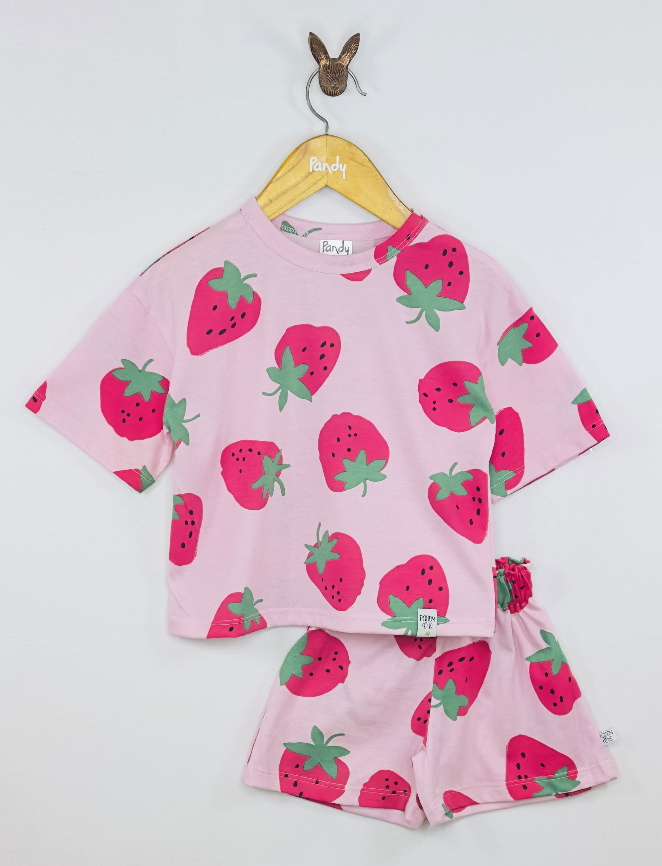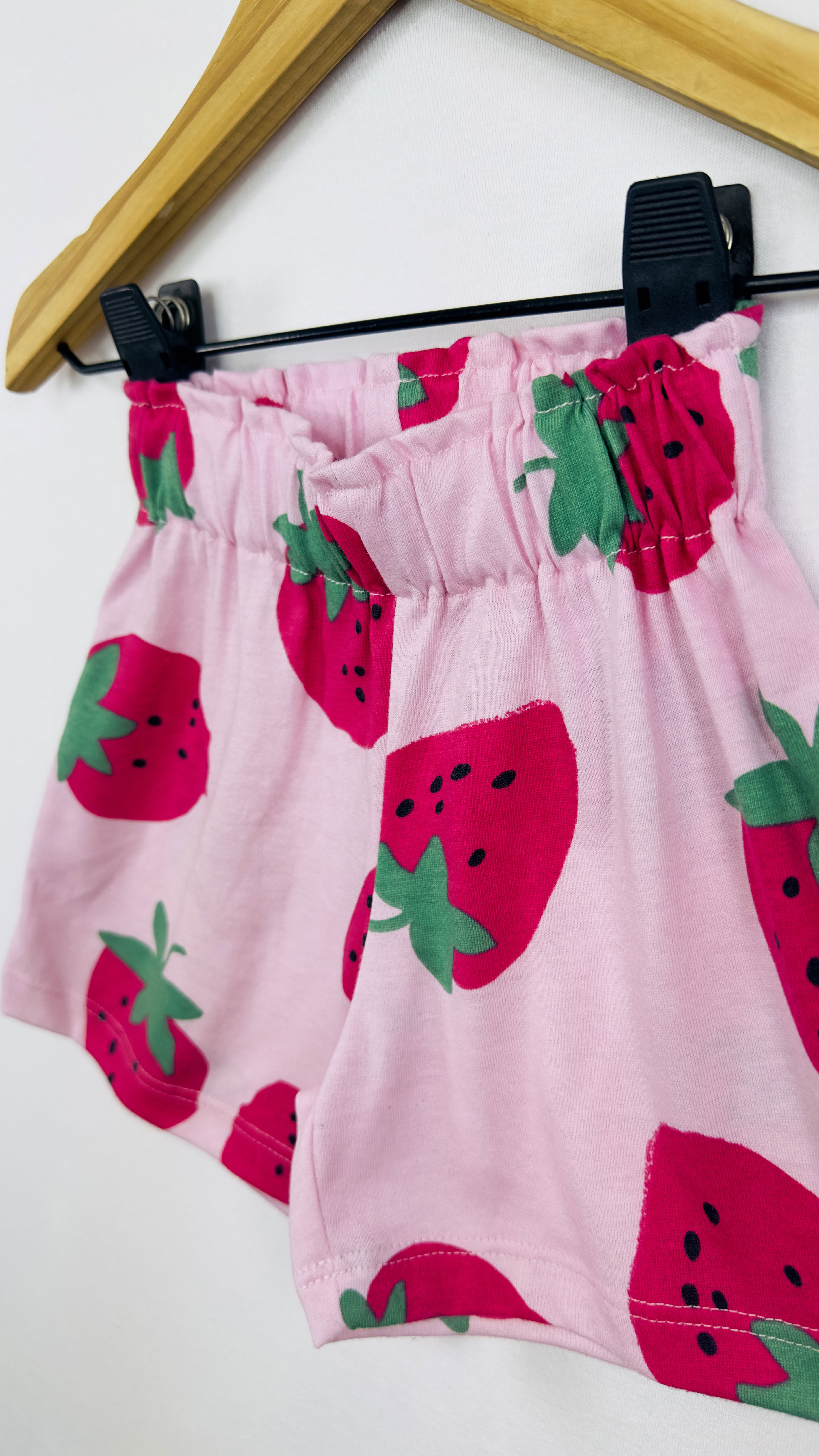 Conjunto nena de dos piezas: Remera manga corta y Short de jersey estampado.